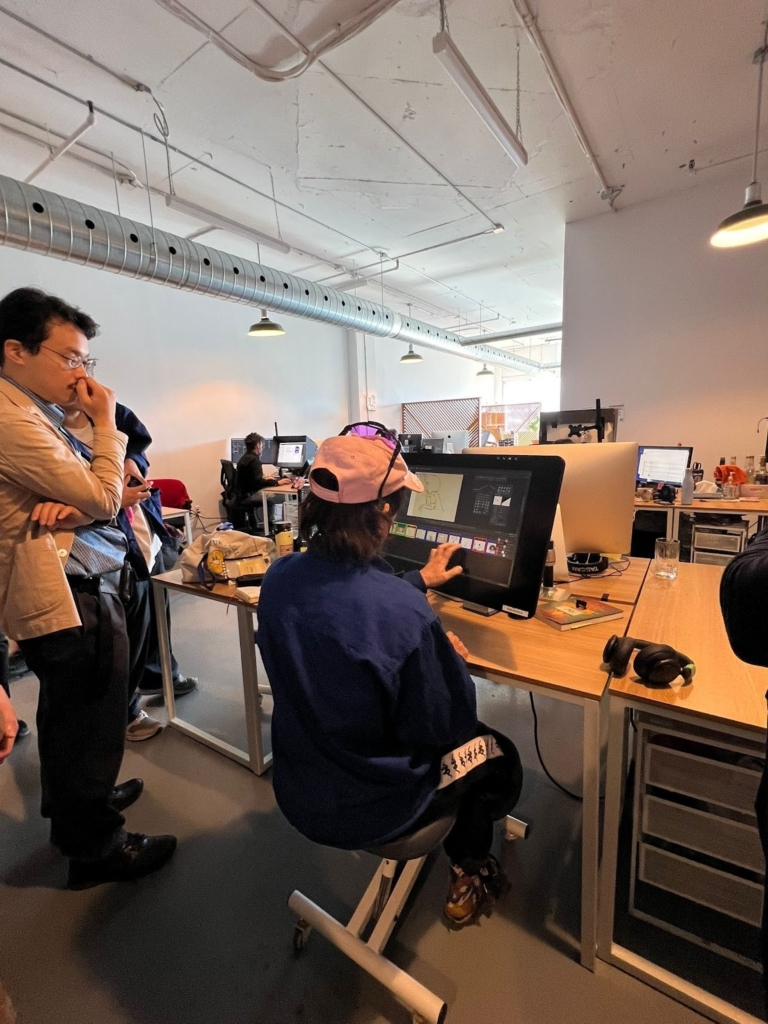 先日インタビューさせてもらったFélixさんのスタジオも見学させてもらえることに! 新作のための実験開発部屋では、さまざまな手法をテストし、アニメーターたちと共同で作るために最適化を試みていたり、別の長編用の部屋では多くの人が机を並べて仕事をしていたりと、想像していた数倍の大きさのスタジオで驚きばかりでした。